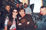 Контраст между ней и группой был настолько сильный, что выглядело это даже комично: певица была одета совершенно по-летнему - в тонких брюках и кофточке с коротким рукавом. А на голове у нее была прическа, чем-то напоминающая пальму... И вот в таком вот виде певица простояла перед камерой 7 часов. При этом она только в перерывах неохотно накидывала на себя курточку, и смотрела на всех остальных удивленными